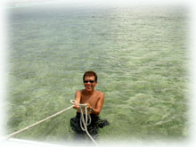 BANANA号で川平へ向かいます。底地ビーチで合流し、ここからゲストと共に出港する魂胆。そしたらゲストさんも波に揺られて疲れないし、早いわけで・・。底地は超浅浅なので、潮の時間があわないとつかえないワザです。。。