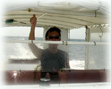 今日はもまだ少し風が強いようです・・・予報では風がマシになると言いながらあまり落ちないのだ・・。今日はマンタにドウシテモ行きたいゲストの方がいらっしゃるので、・・船で行こうと思えば行けるけれど、ちと必殺技を使ってみました。