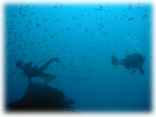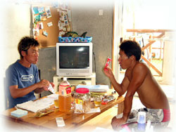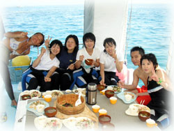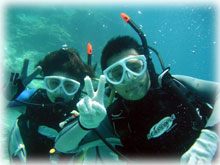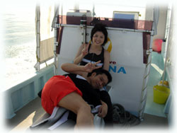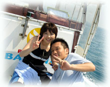 朝から ラブラブ新婚さんは、ヤマシナケンイチさん・アイさんご夫妻です。タイやパラオなど色んな所を潜ってきているそうで、なんとジンベエにも遭ったことがあるとか・・・。いいなー。昨日はマンタを見れたそうだし、これから見たいモノは・・・マンボウだとか・・。マンボー??
