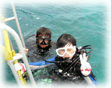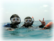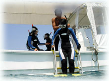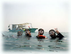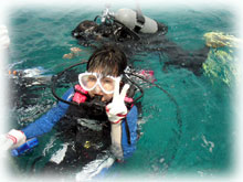 しばらくシュノーケリングなどで休憩し・・・ポイントを移動して、いよいよ体験組は体験ダイブですっっ。