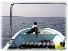 本日も晴れー。3ダイブご希望のご夫婦とまずは朝一で出港です。。ご希望のミノカサゴ宮殿に潜りに行きました。。