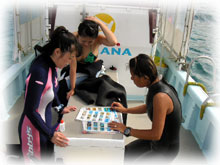 昨日マンタに逢えたお二人ですが、 今日もマンタにあいたい・・・と言うことで、 マンタ方面へ向かいます。 その前に1本、 久しぶりの大崎でもぐりまーす。 ワタシはカメラ撮影隊のお二人をガイド。 ウチノヒトとユキさんは、 マンツーマンで ブランク解消ダイブです 。 久しぶりの大崎何がいてくれるかなー 。