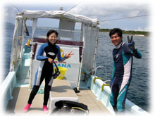 今日も夏の様なお天気です。ますは・・朝一出港3ダイブ希望のミヤモトさん。ウチノヒトとマンツーマンで出港です。