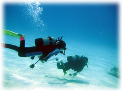 竹富南でウチノヒトとマンツーマン・・ ギンガハゼエリアについたはいいけど・・・ ・・・ 何かがオカシイ。 ミヤモトさん、バッテリーが・・・なので、 また船まで戻るアクシデント。 マンツーマンだからデキルワザ・・。