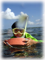 お父さんも、ナオミさんも、初めて触れた海のきれいさに、驚いたようでした。