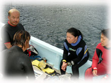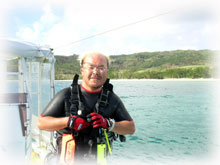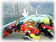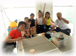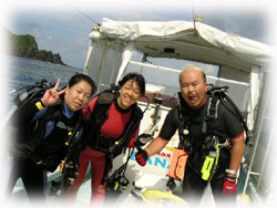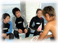 夕方、シャワーの後、最終日のアムさん、そしてキヨコさん、マユミさんとでログ付けです。ニギヤカ3人組は、帰港後、またビーチへ泳ぎに出かけたようです。アムサンは、台風の為潜れず、今日が初日でもあり最終日でしたが・・・実は明日の便で一旦帰られて、また16日に潜りに来られます・・・。ナンというスケジュールだっっっっ・・・。しかも、ログブックは、今年だけでも、石垣・波照間・西表・与那国・・など八重山のログがぎっしり・・・。一体ナンのオシゴト・・・??って普通の疑問です。。とにかくアムさんが羨ましいキヨコさん・マユミさんなのでした・・・。ではではまた16日にっ!!
