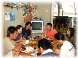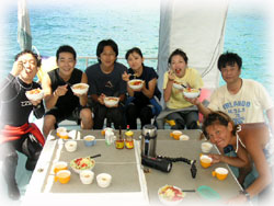ニシダさんは、今日が最終でした。どうも有り難うございました〜。楽しかったです。ログ付けではニシダさんのカードの多さにみんな釘付け。すごーーい・・。ヤノさんご夫妻、どうも有り難うございました〜またでーす。。シンジさん・ユカコさんは明日もダイビング。明日もまた、お帰りなさいメンバーが登場でっす。