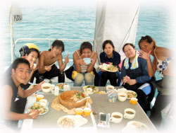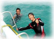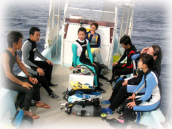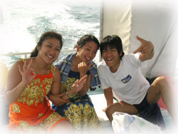 ダイくん・リエちゃん・ノンナちゃんの3人は、今日が最終日です。「まだまだもぐりたーい、ものたりね〜」というダイ君でした。ヒロミさん、シンジサンは明日もダイビングでーす。。シンジサンの上司さんはばなな日記を見ていてくれてはるようで(ありがとうございます〜ぅ)「たのしんでいるようだね」メールが入りました。「帰りたくない」そうです。いやはや・・台風の影響が心配・・・・・・・・。