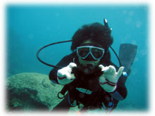 北の国から、今日はゲストサンがいらしてくれたのに、あいにくの大雨・・・。南風が吹き、日々気温も上がってきてるので寒くはないけど・・・。晴れオンナなのになぁ・・・とおっしゃる今日のゲストさんは、カズエさんです。昨年のクリスマスに本島にてアドバンスを取得され、ますますダイビングが楽しくなる頃の様です。