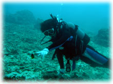 波の静かな名蔵湾へにげ、2本目。 珊瑚がゲンキなポイントです。