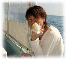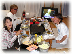 ウチでごはんする約束。夏場はお互い怒濤に忙しいので、会う間すらないけど、オフ時期はよく鍋などをしています。今日も鍋の予定だったけど・・・あまりにも暑いので急遽お好み焼きに変更〜。お好み焼きを作るのは、何年降りか・・なので、少々不安でだったけど・・。カセちゃんにも手伝ったもらって、タコヤキとお好み焼きの関西粉モノ大会となりました。それでも暑くて、クーラーかけてました。食べ過ぎだぁ・・・・。今度は・・・寒い日に鍋でもやりましょぉ〜。