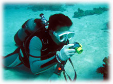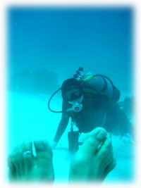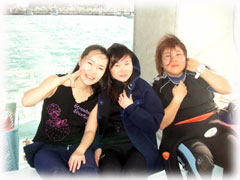 探索ダイブ、皆さんなかなか楽しかったとかっっ。透明度も昨日の比にならないくらいスコーンと抜けていました。2本目も・・・続けて竹富を潜りま〜す。エミちゃんは休憩タイム、ワタシは、ちーちゃんとマンツーマンダイブ、ウチノヒトチームはコブシメ狙いで・・・。
