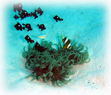 クマノミとミツボシクロスズメダイ幼魚