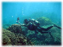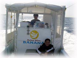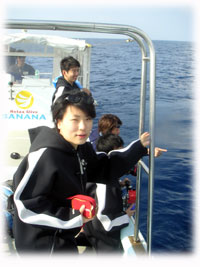 残念ながらマンタあらわれず・・・。このところのマンタポイント、BANANAはかろうじて見ていましたが、かなり確率が悪い状態のです・・今日はとうとうはずしてしまいました・・・。残念。シナノさんは、もうすぐドイツへいってしまうので、みせてあげたかった・・・。こうなったらドイツからまた来て下さいねっっ・・・・・・・・・という帰港途中の帰り道・・・「マンタ発見っ!!」。。。
