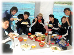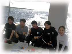 きのうの体験サトコさんも波照間から帰ってきて加わり、ログ付け終了。今から、みんなで宴会なのだ〜。