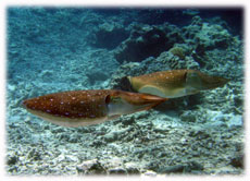 浅瀬でコブシメ観察。