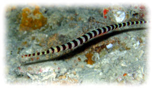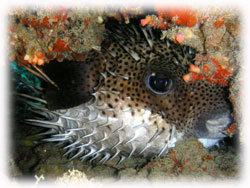 穴の中にネズミフグ。体調80センチくらい。