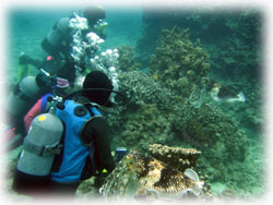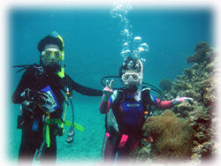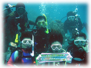 さて、昨日のピーカンはどこへ??。また少し、お天気ぐずついてます。今日は、2月に行われた札幌ばなな会で出逢ったメンバー北海道チームです。今年1月にお越しになって以来2ヶ月ぶりのクロサワさん@忘れ物大魔王・・今日もしっかり水着をお忘れになりました(笑)。そしてヨシコさんは、去年の4月以来のお越しです。今回はお友達のマユコさんと一緒に遊びに来て下さいました。マユコさん、実は今日で三十路に突入っ〜。ようこそ三十路へっっ!!(笑)そして、去年の8月に来て下さった山口ユタカさん・アキラさん親子。ユタカさんは去年は体験ダイビングでしたが、なんと今回はダイバーになってのご登場っ。親子バディーで今日が記念すべき初ファンダイブです。。