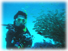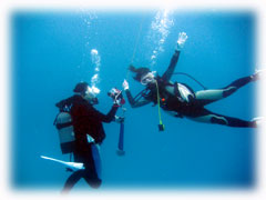 2本潜って港でランチです。