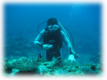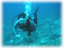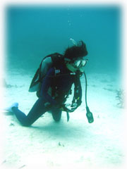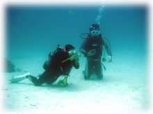 さぁ、エントリー・・。気づくとサトコちゃんはすでに海の中。
