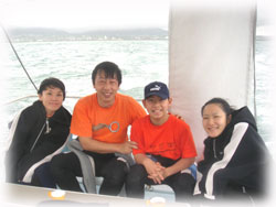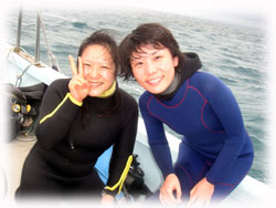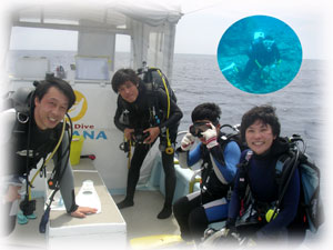 1本目・・・・もともと耳がぬけにくい体質のテツヤくんの耳が(X_X)・・・。ブランクがあるにもかかわらず、準備は万端、エントリーも上手、一つ一つの動作も忘れていないテツヤくん。なのに、左の耳だけぬけてくれなかった・・・。休憩挟んで何度かトライしたけど、だめだったぁ・・・・・・。耳だけはどうすることもできない・・ムリは禁物。まぁ、そんな時もあるさー・・・。時化ているので、一旦港へ・・・。ランチにしましょー。
