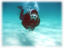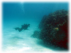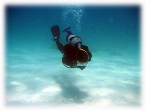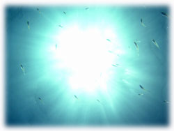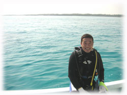 真っ白い砂地の上を午前午後、ふわふわと一時間以上漂って来たそうです。太陽の光の中で潜ってるクロサワさんは BANANAでは初めて・・・先日の北海道組のあいだでは、天気が悪いのはクロサワさんのせい・・・?ってことになってたので汚名挽回??