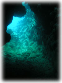 中性浮力のコツがつかめてきたら、プチ洞窟をくぐったりクマノミを観察したり・・・。