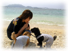 そして、2人と2匹で米原ビーチに繰り出した。