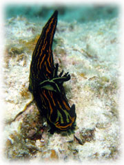 まずはリトルサンドパラダイス。。今日の小さな楽園は、弱肉強食生存競争でにぎやか〜。クロハタやインドカイワリが、無数に群れているスカシテンジクダイをめがけて何度もつっこんで来ます。そのスカテン達は、成魚幼魚ともにまた夏に向かって数を増やしつつあり、成魚ペアのオスは口を大きく膨らませて口の中で卵を育てる口内保育中です。キンセンイシモチも、同じく大きなお口で口内保育中。根の上には、このスカテンを狙ってハダカハオコゼが計3匹。黒はまだチビ。白はペアで、メスの方のオナカが大きく膨らんでいました。コチラも卵がオナカに詰まっているようです。