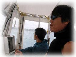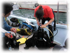 初めての船・・・そして少し深めの深度を潜ります。でも、結構平気なヒトミさん。やっぱり余裕なのでした。