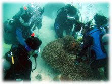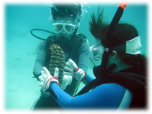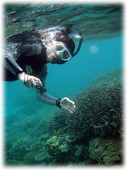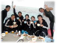 みなさん、ホントに上手でした。。カラフルに群れている様々な魚を見たり、クマノミを観察したり、コブシメのハッチアウトにも遭遇しました。新婚ほやほやのタカシさんとアイさんは、いい記念になりましたね・・・と言うところですが、ナント明日からライセンス講習を受けられるそうです。本番はコレカラですね。今日はかるーく海の中の下見と言うところでした。でも余裕だったので、楽に講習が終わるはず〜・・明日から気をつけてお勉強がんばってくださいね。。 ・・・ナオコさんが残念でしたが、ぜひまた機会をみて、潜りにいらして下さいね〜。 帰ってから、明日のフリーダイビング講座の準備・・・。主催はビーネイチャースクール。来島されてるフリーダイバーメグさんコト、松元恵さんとお店で打ち合わせです。準備も、ポイントもトラブルの予測もダイビングと違って、まったく初めてなので、勉強になります。。アスリートの記録は100mを超えるという深く深く潜るフリーダイビング。同じ海でも、ちょっと新しい世界にワクワク・・・。 | |||||||||||||||||||||||||||||||||||||