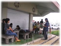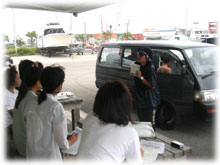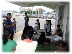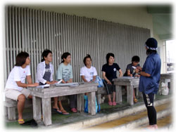 午前チーム午後チームとも、まずは集合受付後、メグさんのフリーダイビングに関するレクチャーです。