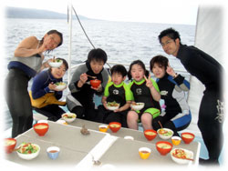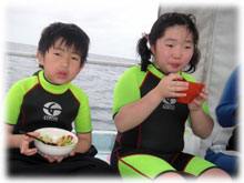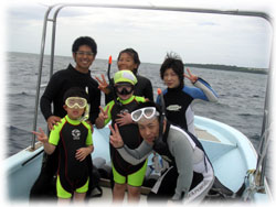 昨日からゴールデンウィークに突入し、島の観光客も増えてきました。 。晴れて欲しいところ・・・ですが、残念。雲が厚いまんまです。今日は・・・・、去年12月の寒〜いときに来て下さったタテノさんがお帰りなさいっ。ちょうど30本を超え、潜ることに余裕が出て楽しくなってきた頃・・。この間宮古島に行かれたばかりだそうです。そしてそして、今年はお子さんのお受験の為に来れない・・と聞いてたけど、やっぱり今年最後の家族バカンスっ〜と言うことで、去年8月「ナマコライセンス」で大はしゃぎだったオザワさんご一家がお越し下さいましたっ。ダイスケさんイクコさんご夫妻、そしてアヤカちゃん、ユウトくんの4人家族です。。