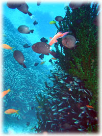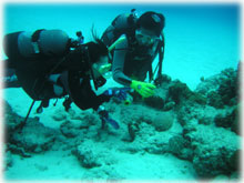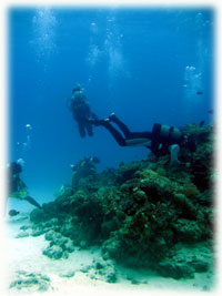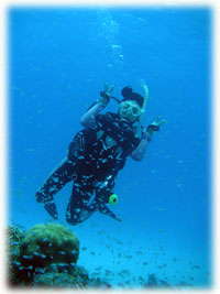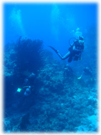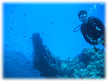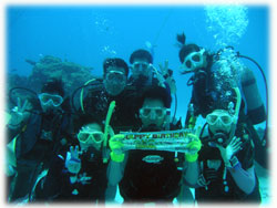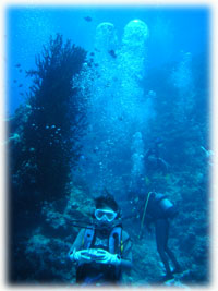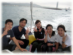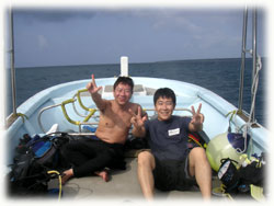 昨日までは貸し切り7名でしたが、今日からは通常6名限定ばななに戻りました。。。きのうのタカコさんカズコさんコンビがいなくなって・・・ピーカンっとなった今日。「原因は・・・やっぱり・・・・」とみんな納得していました。抜けたのは2人なはずなのに・・・なんだか10人くらい抜けたかのような広々感はナンナンでしょ〜・・。楽しすぎる存在感(かしましいともいう)ある二人でした。昨日と同じ、シンジさん&ユカコちゃん、クミちゃん、オオノさん、ヨーコさん、そしてダイブマスター/オオクボさんは今日はファンダイブ・・・・(のばず・・。)晴れたので、ヤスは陸でのてんこもり作業をやるため陸番です。