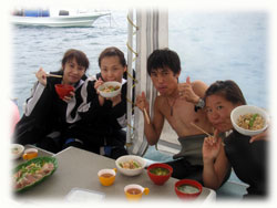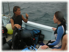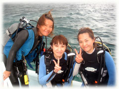 今日はっ・・久しぶりにオンナノコばっかりのレディースDAYになりました。BANANAがオープンした頃は、オンナノコの日がとても多かったけど、最近は、オトコのゲストさんにも多く来て頂けるようになりつつあります。なので、なんだか久しぶりの華やかなオンナノコの日です。。しかし、残念ながら・・・ 朝からくずついたお天気。海も少し時化気味です。朝一ダイブに、昨日からのお二人トモコさんとショウコさんが出港。-20mの海底にて温泉に浸かってきました。その間、ワタシは空港へお迎えに・・。。