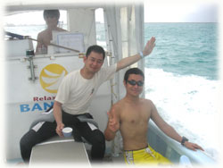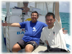 午後からはピーカンの中、賑やかダイブでした。。やけました〜っ。。チカちゃんたちは、また今夜もハシゴ・・??