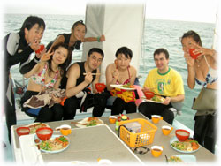 水は濁り気味でしたが、濃ゆーいダイビングでした〜。。。今日は、ダイブマスター候補生のミワさんや、スタッフ・ユッカちゃんがいてくれたので、余計に船上は華やかでした。帰港して、シャワーを浴びて頂きお店でも賑やかにログ付けです。