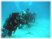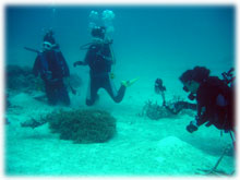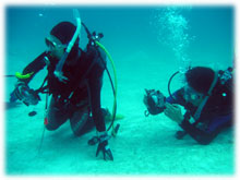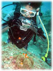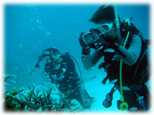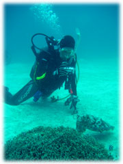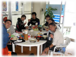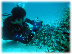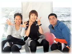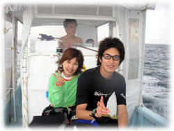そんな今日のゲストさん。昨日は午後からの時化の為、到着後北部で潜って頂いたシマダトモヒサさん、ケイさんご夫妻。コレまでBANANAに何度かご予約を頂いたけど・・・そのたびに何らかの理由ダメになる・・・。今回こそは・・と思っていたら、昨日もダメになったぁ・・・・。と思っていたら、今日は大丈夫でした・・やっとBANANAダイブお初です。でも・・・稀〜な、ばななランチなしの日になってしまいました。そして、同じく昨日は到着後カビラで潜って頂いたQちゃん。ナント20キロの減量に成功っ。スマートになられました。顔も小さい・・。一昨年の9月以来の再会ですっ。そしてノゾミさんもお久しぶり。一昨年の11月以来のお越しです。そして昨日に引き続き最終日となってしまったシンイチさんです。今日もチョコを片手に登場です。 今日は、みんなカメラ持ち。ノゾミさんもデジカメに挑戦です。
