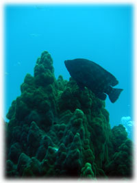 昨日の予報では、南西の風がかなり強くなり波も上がるっ・・というコトだったので、南風に強いカビラの船に乗合いでダイビングを予定していました・・・今日の朝までは。・・・朝起きたら、強いはずの風が全然吹いてない・・・??。気象庁に問い合わせると、今から強い北風が吹きあれる予想とのこと・・。え??北風ってか・・? すべての段取りはリセットせざるを得なくなり、どんでん返しに大あわて。急遽街からの出港に変更しました。急激に吹き出す・・とのことで、荒れてきたら避難すべく時間をずらして出港したけど、手のひらを返したようにではなく、徐々に風が強くなっていきました。。と言うことで、本日は竹富の南でダイビングです。南のうねりに北風。今日はここにポイントが限られており、アチコチダイビング船だらけ・・・船を止めるのも大変な程でした・・。