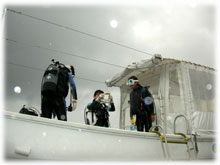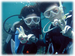 この数日、海況とお天気には悩まされていたので、朝になるのが恐ろしい・・(笑)ナント、今日は雨が降っているものの波はベタっー。なんだか静かな海はヒサシブリデス・・・。。そんな本日のゲストサンは、3日目最終日となりましたノゾミさん。今日もデジカメで撮りますっ。(←はまったかなー・・)そして、久しぶりのご登場、イクコさんっ。前回は、一昨年10月。フラを始められてはまっているそうですっ。なぜだかいつも台風にたたられてしまうイクコさん。今日は・・しずかですよー。そしてイクコさんと大学院の同級生リョウコさんも登場。この春ご結婚されたそうですが、3日後に旦那さんはタイへ単身赴任・・。と言うわけでダイビングです。そして、去年のご予約は急遽オウチの事情でキャンセル・・になってしまったコバヤシさん。やっとこれました〜。