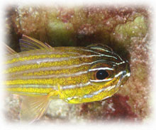 アカシマシラヒゲエビにクリーニングされ かなり恍惚の表情だったハタ。