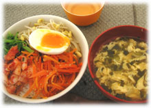 今日はビビンバ丼とニラタマスープ。