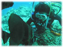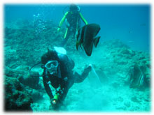 ダイバーによってくるツバメウオ。