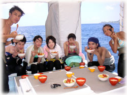 4人組のみなさんは明日帰られます。今回はピーカンで波も静香で良かったですね。またお待ちしていますね。。レイナさんは、宮古島を潜ってから帰られるとのことです。どうぞ楽しんで帰って下さいね〜。