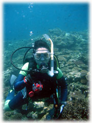 とキョウコさん・・。ワタシタチ見てません・・。これホントだったら、スゴイ・・。マンタのホバリング近くのガレ場に、ゴマモンガラの産卵床が・・・。恐ろしい繁殖期のゴマモンガラ・・しばらく要注意です・・。