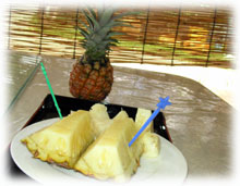 ランチにお出しするパインを購入し、 実家にも送りました。 そしたら・・普通のパイン・ピーチパイン・スナックパインの3種を食べさせてくれました。 おいし〜ぃ。オナカパンパン・・・。