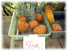 農家の表には、無人販売。 ワタシタチは島に暮らし始めた当初、 ココによく通い、 規格外の安いマンゴーやパインを 手に入れてました。