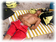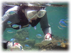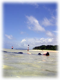 トモミさんは、潜れなくて残念だったけど・・楽しい1日でした・・・。たまにはビーチでのんびりじっくり魚観察も楽しいっっ!! お湯の様な海水に浸かってタラタラしてるのも、気持ちよかった〜。重い器材背負って歩いて浅いビーチをムリに潜るより、ビーチたらたらツアーは、身軽で気軽で癒し効果抜群なのでした。アユミさん、トモミさんも心身癒せましたか〜。今回は台風が来ちゃって残念だったけど・・・どうもありがとうございました。。またお会いできる日を楽しみにしています。