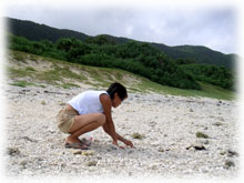 誰もいないビーチで、タクサンの品の中から仕入れてきました。そして、そのビーチで座り込んで話すコト数時間・・・。気が付くと、もう日暮れ間近でした・・・。帰りにパインを仕入れて帰宅です。明日は船が出られそうですが、台風ノーゲストになってしまいました。