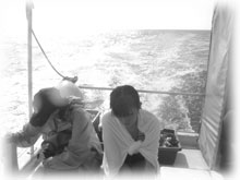 まだ台風の影響を受けて波が高いので、島影になるところを選んでいきましょう。